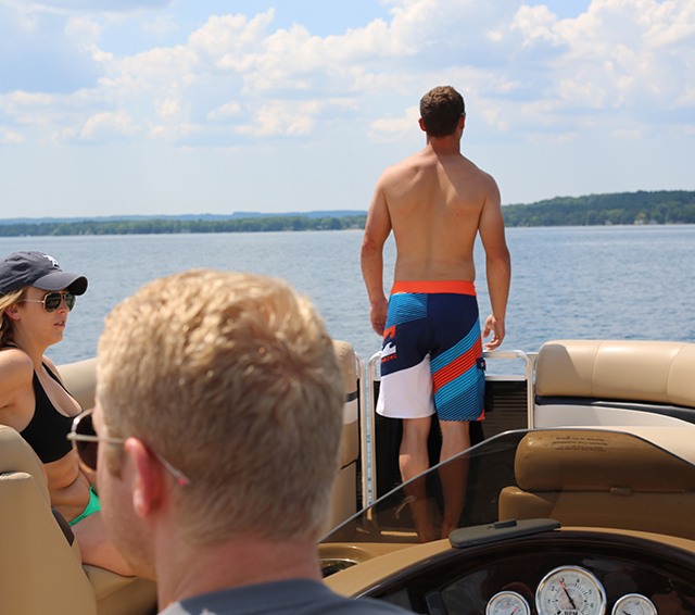 These sturdy vessels make the perfect boat rental for large groups. Plug your phone into our sound system and melt away your worries. You can catch some rays and relax on the aft sun pad, or put up the sun canopy for some shade if you prefer. Your options are endless and your time is precious, so spend it on a Harris Pontoon boat rental from Wild Wave Watersports and make lasting memories with your family and friends!